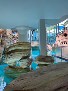 Von Beginn an legte das Titania großen Wert auf eine besondere Atmosphäre und gestalterische Originalität. Echte Fischerboote aus Hamburg, Kelohölzer im Saunabereich und marokkanische Fliesen im orientalischen Bereich prägen das unverwechselbare Ambiente. Schon zur Eröffnung begeisterte das Bad mit Attraktionen wie dem Piratenschiff, Deutschlands erster Trichterrutsche und einem großen Aquarium, in dem Haie, Muränen und Anemonen die Grotte bevölkerten. Die imposante Felsenlandschaft sucht bis heute ihresgleichen in der deutschen Bäderlandschaft und macht das Titania zu einem wahren „Festival der Sinne“. Hier wird das Leitmotiv „Urlaub im Alltag“ lebendig – ein Ort, an dem Erholung und Abenteuer Hand in Hand gehen und jeder Besuch zu einer besonderen Auszeit wird.